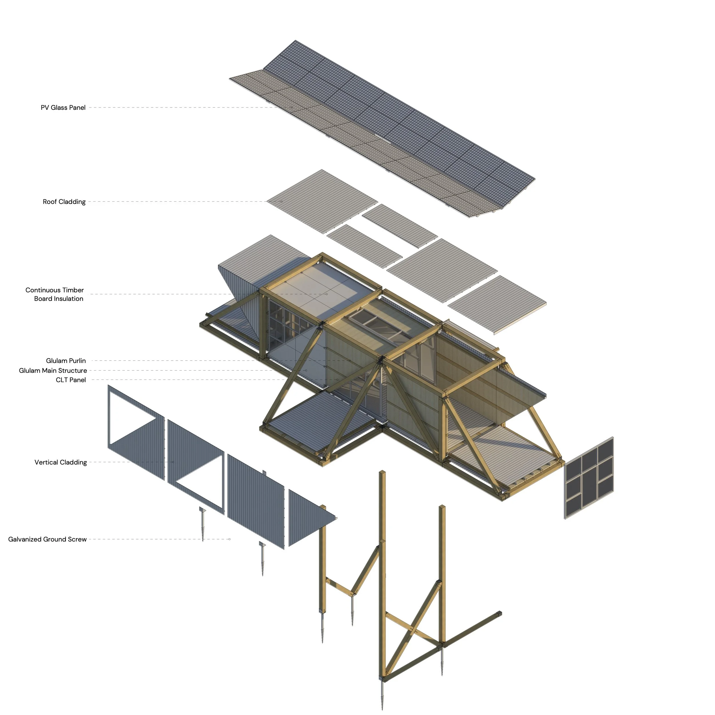 Master in Mass Timber Design IAAC2022 Prefabricated Mass Timber ADU adaptable to the steep hillsides of Southern California